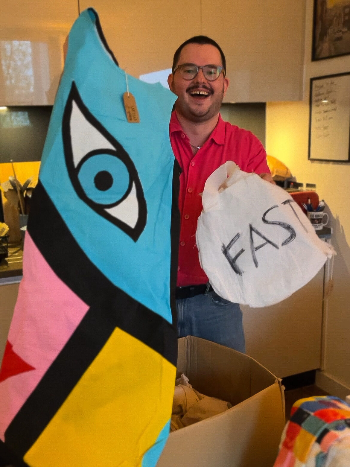 “I’ve got it right here actually, if you do want to see it,” Kit said. “I’ve got all the garments, I’ve got all of them. Even got my poxy little handbag that says fast fashion on it!”